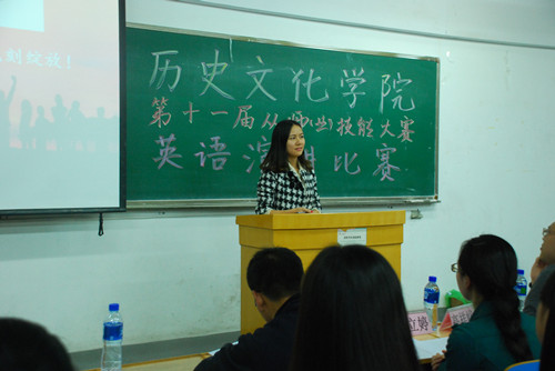 在比赛中,参赛同学表现出了得体的仪容、大方的举止,其流利的口语,独具匠心的自我介绍,大方自然又激情澎湃的主题演讲,以及最后与老师、同学的充分互动,为现场观众献上了一场英语盛宴,并得到了评委们一致的赞赏与肯定。最终经评委高祥峪老师、任立婷老师以及外国语学院的吕飞、成喆同学的认真评议,史涵文、陈楠、张美珍等三位同学分别获得本次比赛一、二、三等奖,王小燕、万莉莉同学获得优秀奖。