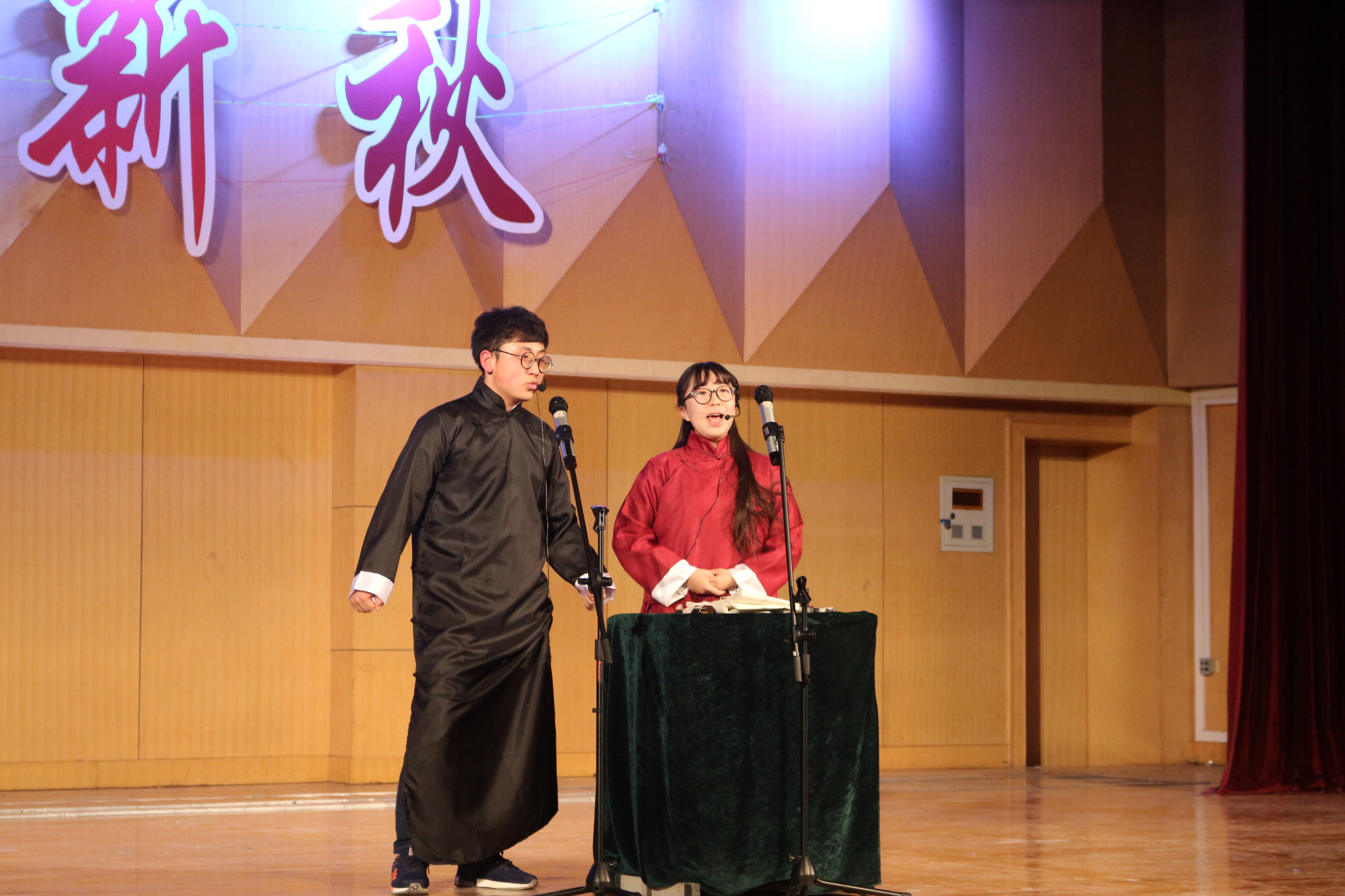 学生演唱的歌曲《至少还有你》拉开晚会序幕,古典舞《蜀绣》、现代舞《BOOMBAYAH》、民族舞《安代舞》、敦煌舞《天女·伎乐+三寸天堂》等舞蹈凸显了学院学生的人文气质和历史唯美;相声《新论捧逗》《卖布头》展现了大一新同学的才艺,而且还寓教于乐,博得观众们的阵阵欢笑;小品《机械公敌》《四大才子》以幽默的桥段和精彩的表演赢得现场阵阵掌声。学生干部集体表演了舞蹈《快闪串烧》。